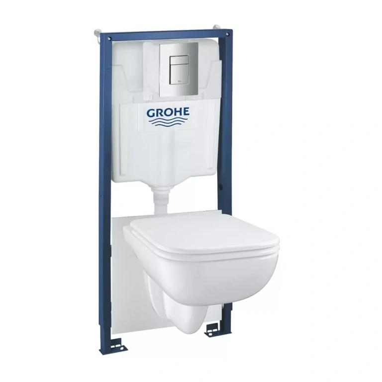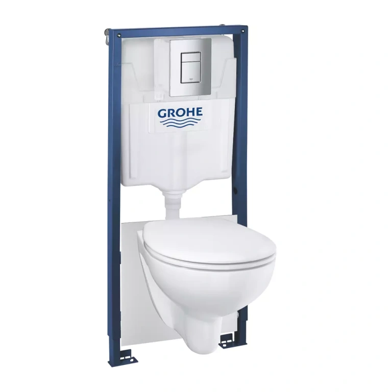 Set vas WC suspendat cu capac Grohe Start Edge rezervor incastrat Solido 5 in 1 cu clapeta crom Even