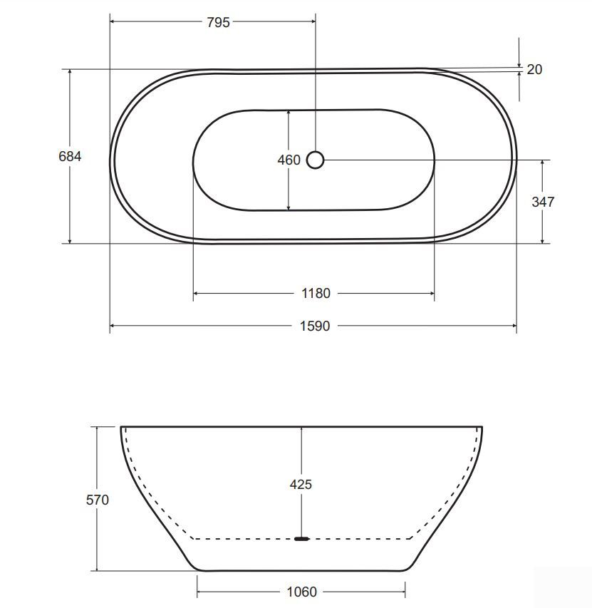 Specificatii tehnice Cada freestanding Besco Moya 160×68 cm alb lucios: