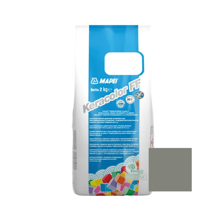 Keracolor FF de la Mapei este un mortar pe baza de ciment pentru rosturi, imbunatatit, cu absorbtie redusa de apa si rezistenta ridicata la abraziune. Acesta se utilizeaza la chituirea rosturilor dintre placile de finisaje montate la interior sau exterior, pe pardoseli sau pereti, pentru placi de faianta (bicottura), gresie (monocottura), klinker, gresie portelanata, placi din roci naturale (marmura, granit, placi de piatra compozita), mozaic de sticla sau de marmura.