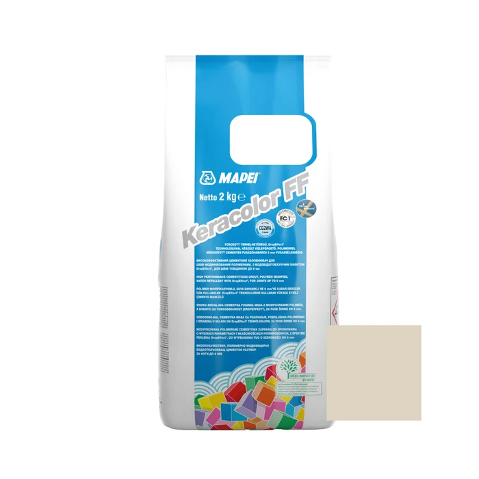 Keracolor FF de la Mapei este un mortar pe baza de ciment pentru rosturi, imbunatatit, cu absorbtie redusa de apa si rezistenta ridicata la abraziune. Acesta se utilizeaza la chituirea rosturilor dintre placile de finisaje montate la interior sau exterior, pe pardoseli sau pereti, pentru placi de faianta (bicottura), gresie (monocottura), klinker, gresie portelanata, placi din roci naturale (marmura, granit, placi de piatra compozita), mozaic de sticla sau de marmura.