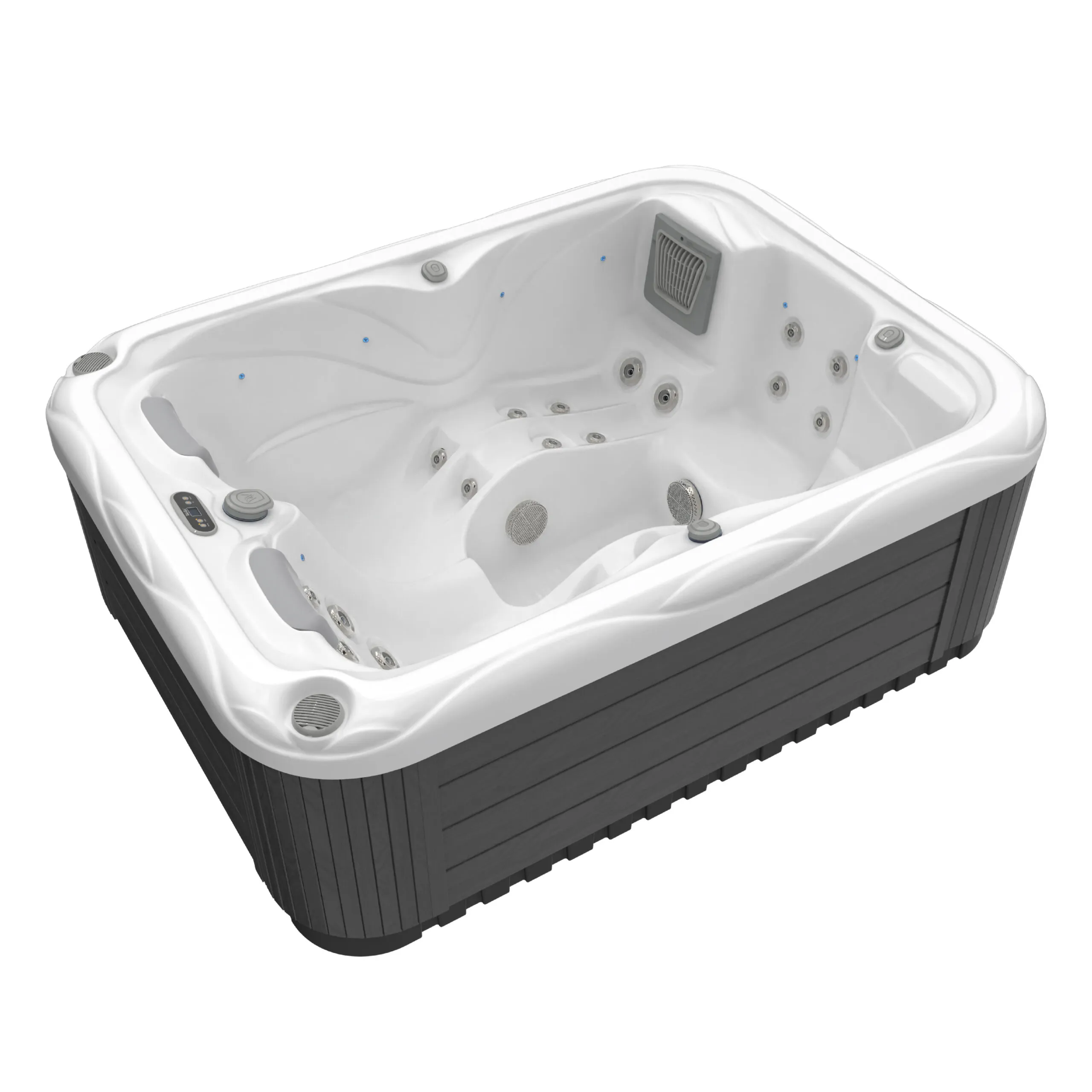 În varianta Premium, jacuzzi-ul este echipat standard cu sistemul Smart-In step – o treaptă inteligentă cu pompă de căldură integrată, care reduce consumul zilnic de energie până la doar 2,7 kWh. Astfel, vă puteți bucura de un confort termic constant, cu eficiență energetică ridicată și costuri reduse pe termen lung.