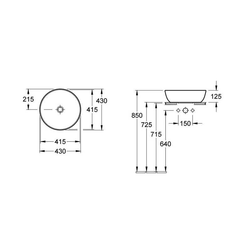 lavoar pe blat, rotund, diametru 43 cm, fara orificiu pentru baterie, fara preaplin,