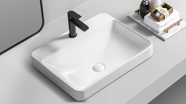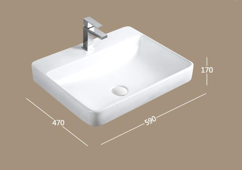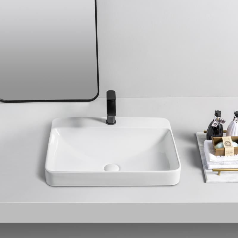 Lavoar dreptunghiular HOUSTON, din porțelan, montaj pe blat, 59x47cm – alb