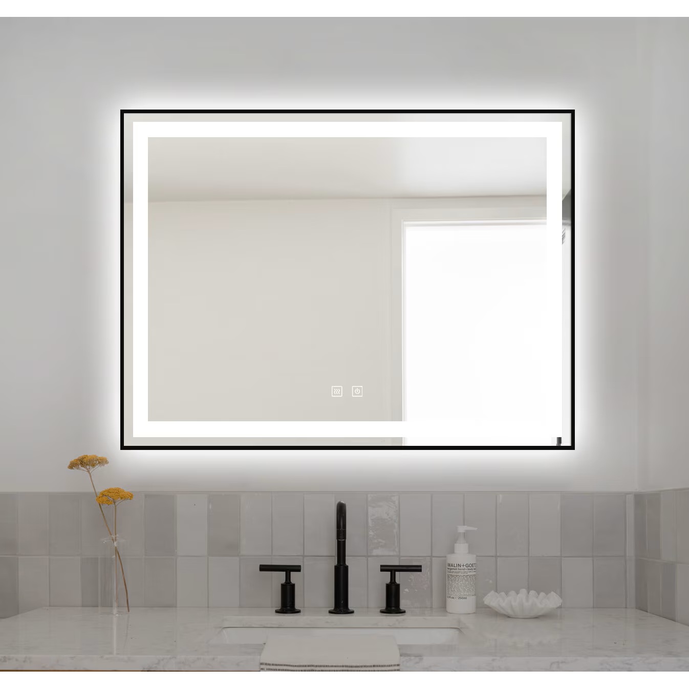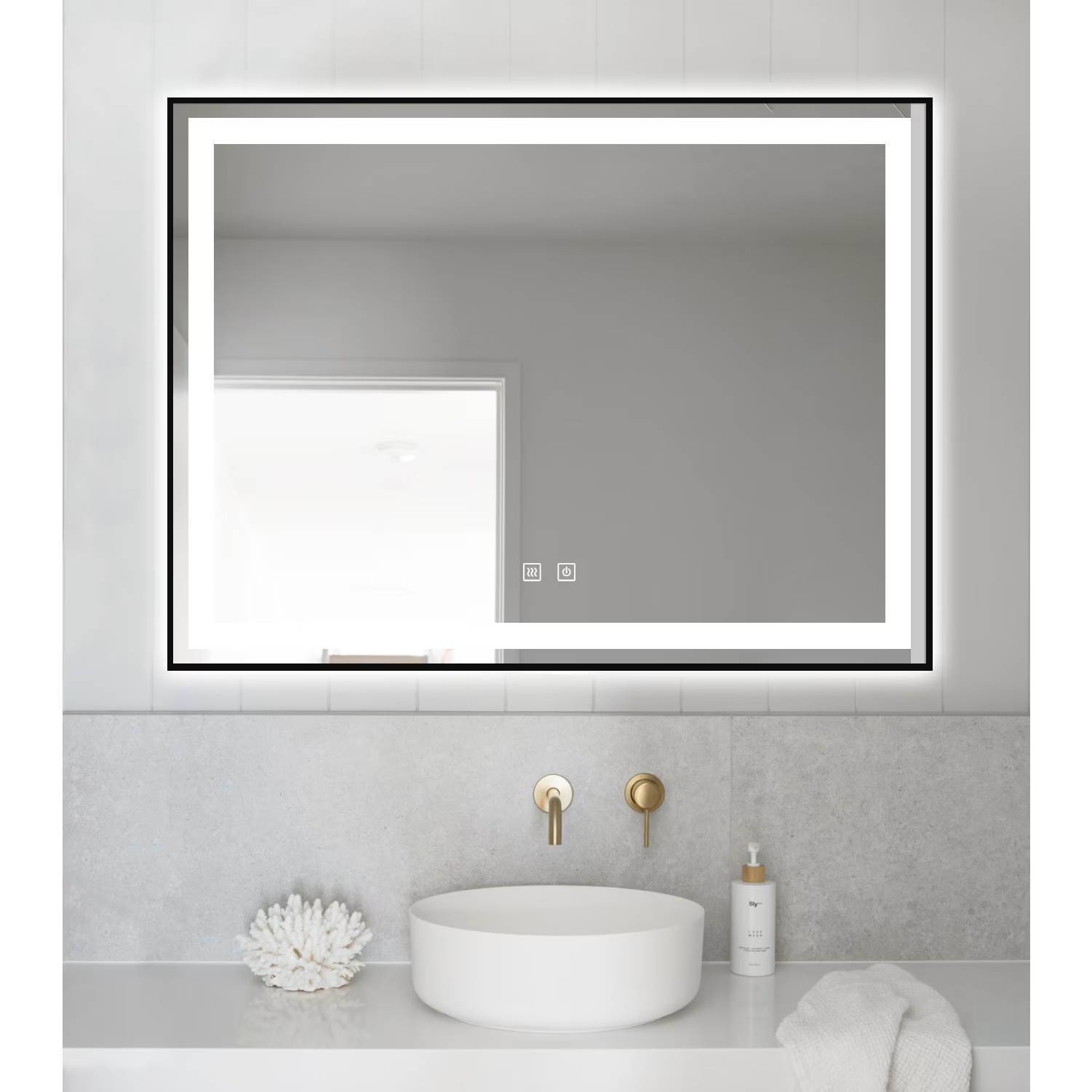 Datorită funcției TOUCH, oglinda se deosebește simțitor față de cele clasice. Folosind o atingere delicată asupra butonului aflat pe suprafata oglinzii, poți pune in funcțiune sau poți opri LED-urile de pe marginile sale. Totodată, ținând apăsat butonul touch, ai posibilitatea și de a regla intensitatea luminii pe care LED-urile o emană. Folosind funcția de dezaburire poți uita de condensul care se formează pe oglinzile clasice, și să te bucuri de o reflexie clară tot timpul în oglinda din baia ta.