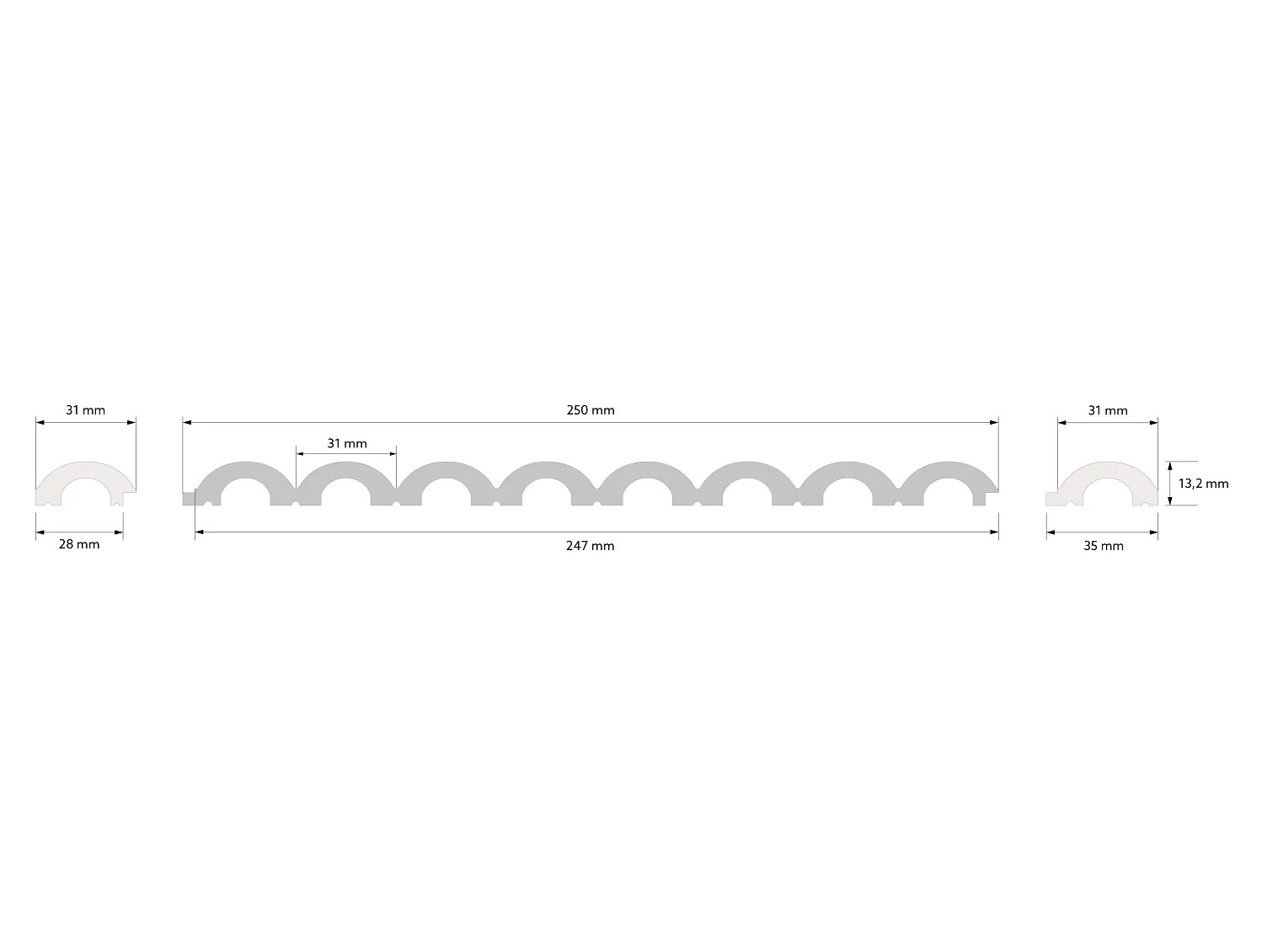 Terminația din dreapta a panourilor de perete Mardom Decor Duna a fost realizată din material PolyForce® de înaltă calitate, care garantează rezistență 100% la apă și radiații UV. În plus, în producție a fost utilizată tehnologia inovatoare ScratchShield®, care întărește suprafata materialului oferind rezistență la deformare din impact și zgârieturi inclusiv cele realizate cu o unealtă ascuțită. Profilul de inchidere de parte dreapta WP001R Duna garanteaza un finisaj subtil si estetic al palcarilor cu panouri si protectia marginilor impotriva deteriorarii mecanice. Mardom Decor oferă, de asemenea, o terminație dedicată pentru partea stângă WP001L.