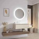 Seturile de mobilier suspendate de la Karag, care includ blat și lavoar, sunt soluții elegante și funcționale pentru băile moderne. În această configurație, lavoarul este montat pe blat, oferind un aspect contemporan și rafinat. Blatul, suspendat și bine finisat, adaugă o notă de eleganță și creează un spațiu amplu pentru utilizare.