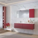 Seturile de mobilier cu lavoar suspendate de la Karag sunt soluții moderne și elegante pentru băi, combinând designul minimalist cu funcționalitatea. Realizate din MDF (plăci din fibre de densitate medie), aceste seturi oferă durabilitate și rezistență la umezeală, un aspect esențial pentru spațiile umede. Finisajul este de obicei de calitate superioară, disponibil în diverse nuanțe, de la alb lucios la texturi care imită lemnul natural.