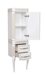 Designul clasic și elegant al colecției Royal se distinge prin linii rafinate și contururi îmbinate cu patina aurie ce adaugă o notă de opulență. Culoarea albă conferă mobilierului un aspect luminos și nobil, integrându-se perfect în orice baie ce îmbrățișează stilul clasic.
