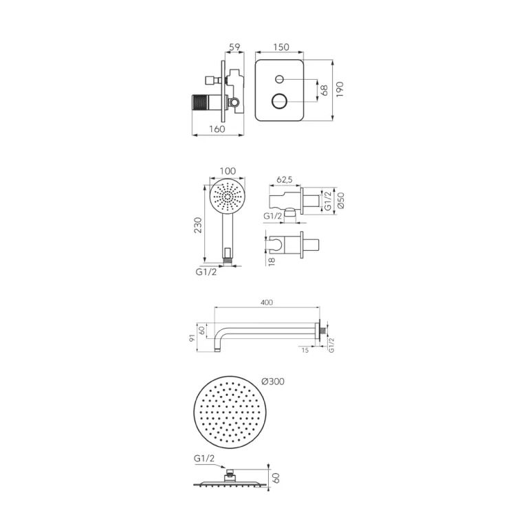 SISTEM DUȘ 6 în 1 ARDESIA FD1-ARD-7PSET1-25