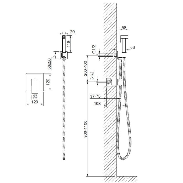 Baterie încastrată pentru bideu cu duș de mână CUBEFIELD – Crom