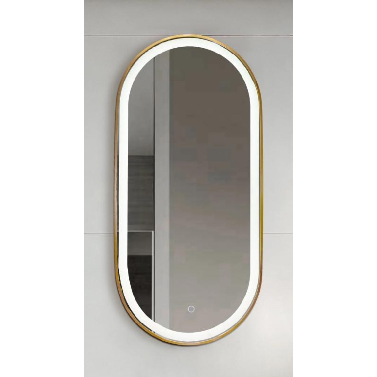 Oglindă LED cu dezaburire, cu ramă de aluminiu, auriu periat, 40x90cm