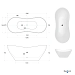 Specificatii tehnice Cada freestanding Besco Viya 160 x70 cm alb-negru lucios: