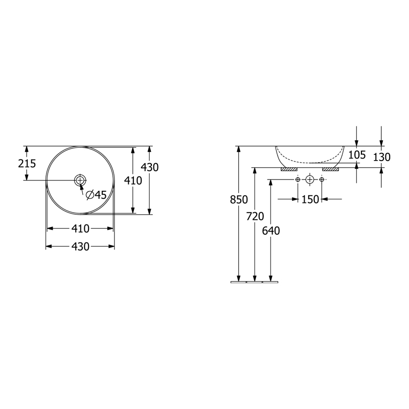 lavoar pe blat, rotund, fara orificiu pentru baterie, fara orificiu de preaplin