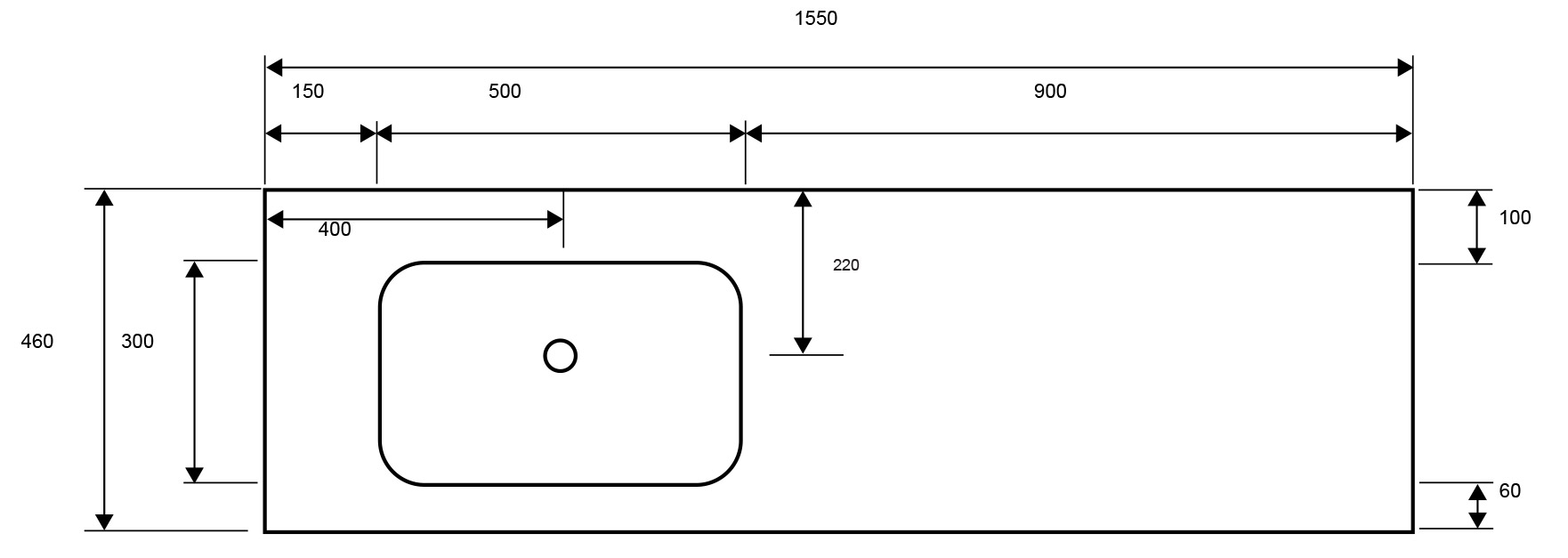 LAVOAR PE MOBILIER KARAG 155x46cm ALB 5206836026220