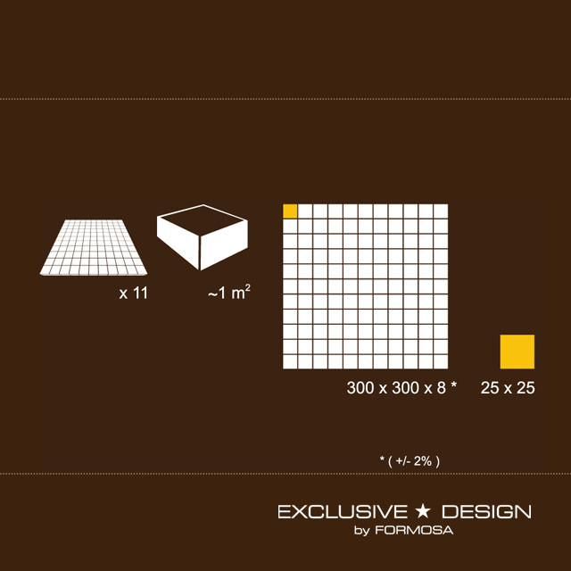 Instalare: Mozaicul Exclusive Design by Formosa este proiectat pentru a fi montat cu ușurință, oferind o adaptabilitate excelentă la diferite tipuri de substraturi. Instrucțiunile de montaj sunt clare și simplificate, facilitând procesul de instalare.