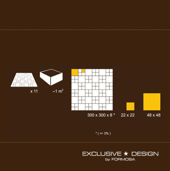 Instalare: Mozaicul Exclusive Design by Formosa este proiectat pentru a fi montat cu ușurință, oferind o adaptabilitate excelentă la diferite tipuri de substraturi. Instrucțiunile de montaj sunt clare și simplificate, facilitând procesul de instalare.