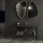 Designul suspendat al acestor seturi nu doar că adaugă o notă de modernitate, dar permite și economisirea spațiului, creând un aspect aerisit și facilitând curățenia. Lavoarele integrate sunt proiectate să ofere un spațiu amplu pentru utilizare, iar sertarele sau dulapurile incluse sunt gândite pentru a organiza eficient produsele și accesoriile de baie.